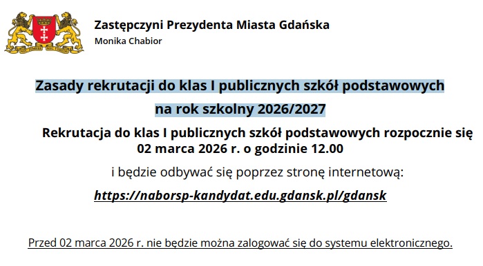 Zasady rekrutacji do klas I 2026/2027 - Szkoła Podstawowa nr 20 im. kmdra ppor. Jana Grudzińskiego